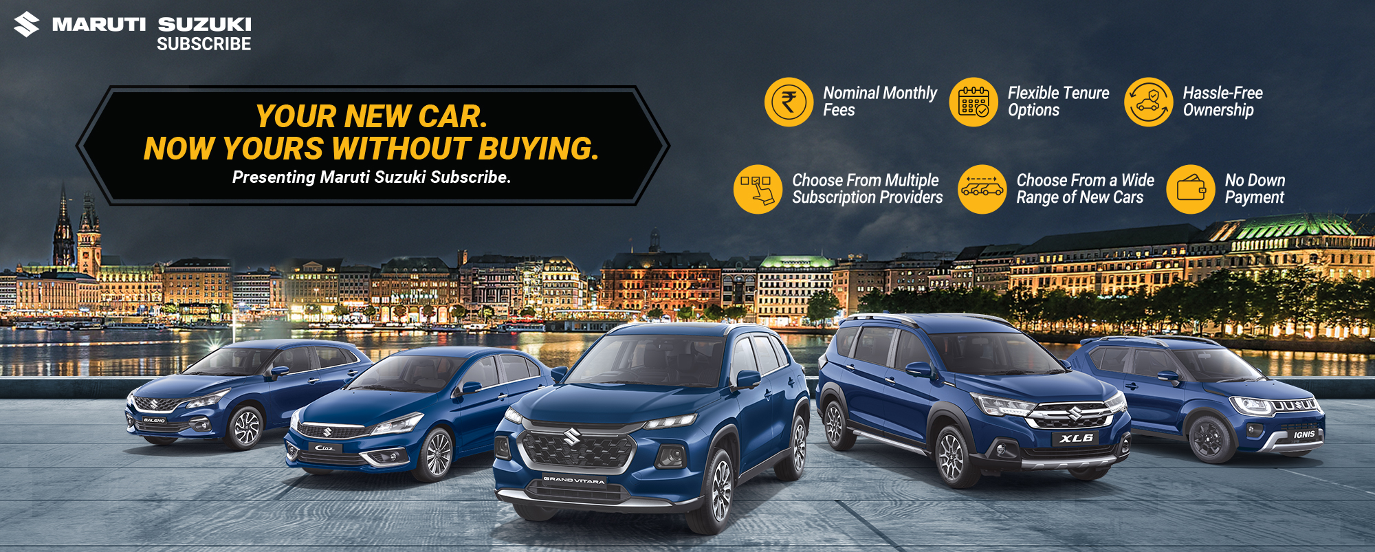 Maruti Suzuki Subscribe enables all customers to enjoy driving their preferred Maruti Suzuki cars without having to deal with all the financial responsibilities that come with owning a car.All you need to do is opt for a monthly subscription plan at a fixed monthly fee, which includes the routine maintenance and insurance costs, and choose a flexible tenure. At Karnal Motors in, GT Road, Kurukshetra, all Hatchback, Sedan, SUV, the MUV models line-up includes Baleno, Invicto, EVitara, Jimny, Ciaz, Ignis, Fronx, Grand Vitara, XL6. Here, you will enjoy Maruti Suzuki Subscribe benefits such as: